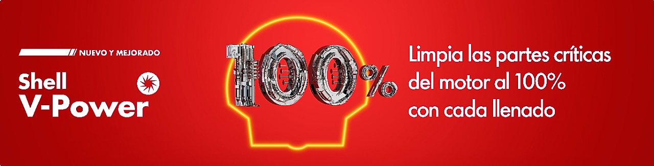 La nueva y mejorada Shell V-Power limpia al 100% las partes críticas del motor y renueva completamente su desempeño en cada viaje.¹